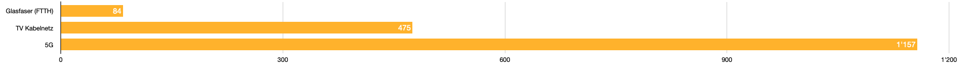 Die schlechteste aller Kabeltechnologien (TV-Kabelnetz) ist immer noch 2.4x energieeffizienter als die modernste Mobilfunk Technologie (5G).